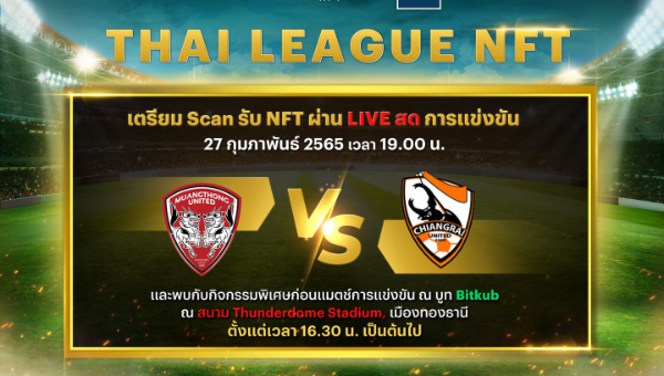 แฟนบอลห้ามพลาด!!! Bitkub เตรียมเปิดบูธ หน้าสนามธันเดอร์ โดม สเตเดียม เพื่อให้สแกนรับการ์ด NFT แบบฟรีๆ ส่วนแฟนบอลที่อยู่ทางบ้านสามารถสแกนรับการ์ด NFT ได้ผ่านหน้าจอการถ่ายทอดสดศึก "รีโว่ ไทยลีก" ของ AIS PLAY และ ฟรีทีวี ทุกคู่ สำหรับแฟนๆ ที่อดใจรอไม่ไหว สามารถซื้อได้เลยที่ Bitkub NFT แบบสุ่ม "กาชาปอง" แต่ต้องมีเหรียญ Kub จาก Bitkub เพื่อใช้ซื้อ