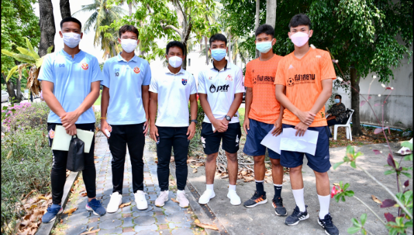นักฟุตบอลชายทีมชาติไทย รุ่นอายุไม่เกิน 17 ปี พร้อมทีมงานสตาฟฟ์โค้ช เดินทางรายงานตัวที่ กรมวิทยาศาสตร์การแพทย์ เพื่อตรวจหาเชื้อโควิด-19 ก่อนที่จะเข้าแคมป์เก็บตัวที่ พัฒนา กอล์ฟ คลับ แอนด์ รีสอร์ท จังหวัดชลบุรี ระหว่างวันที่ 7 ถึง 13 มีนาคม 2565