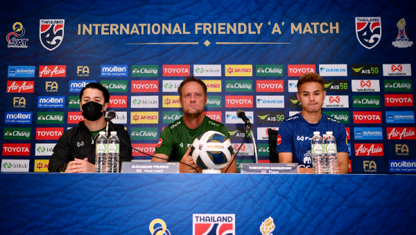 การแถลงข่าวครั้งนี้ ทางทีมชาติไทยได้ส่ง มาโน โพลกิ้ง หัวหน้าผู้ฝึกสอนฟุตบอลชายทีมชาติไทย และ ธีราทร บุญมาทัน กัปตันทีมชาติไทย เข้าร่วมการแถลงข่าว