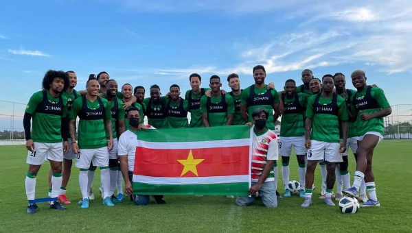 สำหรับทีมชาติซูรินาม ปัจจุบัน อยู่อันดับที่ 140 ในฟีฟ่า แรงกิ้ง นำทีมมาโดย สแตนลีย์ เมนโซ หัวหน้าผู้ฝึกสอน พร้อมด้วยนักเตะ 22 รายโดยมีรายชื่อดังต่อไป