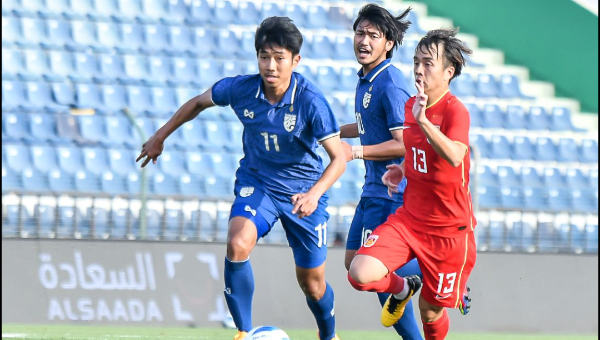 ณ สนาม อัล อาวีร์ ฟุตบอล ดูไบ คัพ 2022 นัดที่สอง ทีมชาติไทยรุ่นอายุไม่เกิน 23 ปี พบกับ จีน