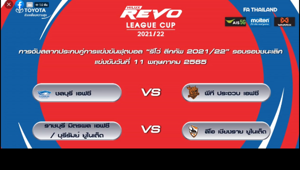 สมาคมกีฬาฟุตบอลแห่งประเทศไทยฯ ร่วมกับ บริษัท โตโยต้า มอเตอร์ ประเทศไทย จำกัด จัดพิธีการจับสลากประกบคู่ออนไลน์ รีโว่ ลีก คัพ 2021/22 รอบรองชนะเลิศ ขึ้น