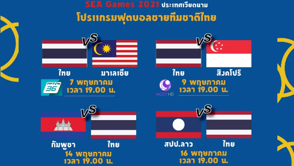 ซีเกมส์ 2021 "ฮานอยเกมส์" ระหว่างวันที่ 12-23 พ.ค. 2565 ได้เผยช่องที่จะทำการถ่ายทอดสดหารแข่งขันฟุตบอลชายออกมาแล้ว