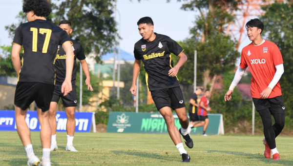 ณ สนาม ซ้อม ในศูนย์ฝึก นัม ดินห์ ฟุตบอลชายทีมชาติไทยชุดลุยศึกซีเกมส์ ลงฝึกซ้อมครั้งแรกที่เวียดนาม เพื่อเตรียมพร้อมสำหรับการแข่งขันฟุตบอลชาย ในมหกรรมซีเกมส์ ครั้งที่ 31 ที่ ประเทศเวียดนาม