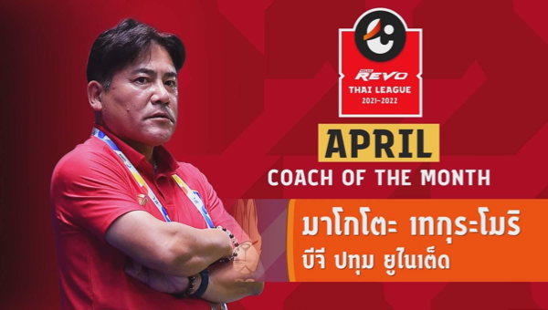 รางวัลผู้ฝึกสอนยอดเยี่ยม Revo Thai League Coach of the Month ประจำเดือนเมษายน ตกเป็นของ มาโกโตะ เทกุระโมริ หัวหน้าผู้ฝึกสอนของบีจี ปทุม ยูไนเต็ด โดยในเดือนเมษายนที่ผ่านมา กุนซือเลือดซามูไรรายนี้ พาทีมเก็บชัยได้ทั้งหมดทุกนัดที่ลงเล่นในเดือนนี้แต้มรวมไปถึงยิงรวมกันทั้งหมด 12 ประตู การันตีที่ 2 ในฤดูกาลนี้ได้สำเร็จ