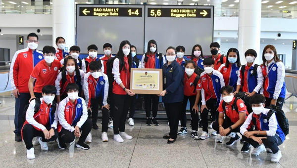 ทัพนักฟุตบอลหญิงทีมชาติไทย พร้อมทีมงานสตาฟฟ์โค้ช เดินทางถึง สนามบินโหน่ยบ่าย เมืองฮานอย ประเทศเวียดนาม เป็นที่เรียบร้อยแล้ว โดยได้รับการต้อนรับจากเจ้าหน้าที่สถานเอกอัครราชทูต ณ กรุงฮานอย และฝ่ายจัดการมหกรรมกีฬาซีเกมส์ ครั้งที่ 31