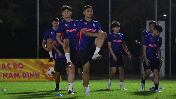 ณ สนามในศูนย์ฝึกนัม ดินห์ ฟุตบอลชายทีมชาติไทยชุดลุยศึกซีเกมส์ ลงฝึกซ้อมครั้งสุดท้าย เพื่อเตรียมพร้อมสำหรับการแข่งขันฟุตบอลชาย ในมหกรรมซีเกมส์ ครั้งที่ 31 นัดทีสองที่จะพบกับ ทีมชาติสิงคโปร์