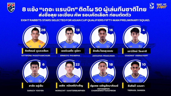 8 แข้ง "เดอะ แรบบิท" ติดโผ 50 ผู้เล่นทีมชาติไทย ส่งชื่อลุย เอเชี่ยน คัพ รอบคัดเลือก ก่อนตัดตัว