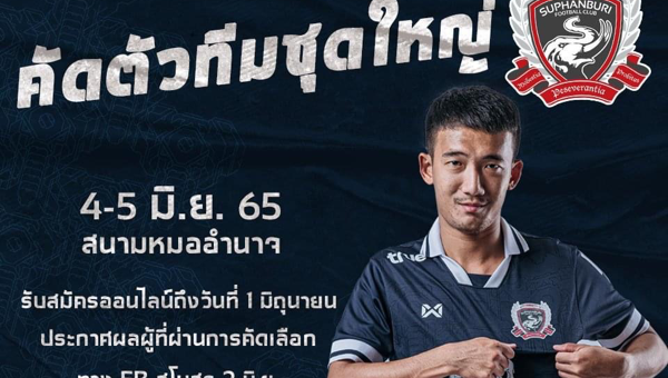 สุพรรณบุรี เอฟซี เปิดรับสมัครนักฟุตบอลทั่วไป และแข้งเลือดสุพรรณ ที่สนใจเข้ามาร่วมทีมเพื่อสู้ศึกไทยลีก2 ฤดูกาล 2022/23