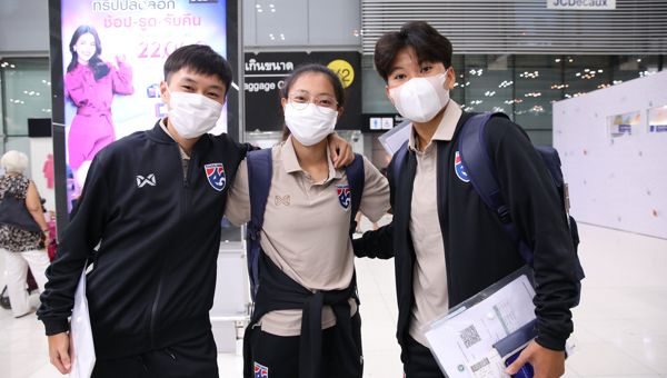 ณ ท่าอากาศยานสุวรรณภูมิ ฟุตบอลหญิงทีมชาติไทย รวมตัวกัน เพื่อเตรียมเดินทางไปเมืองมะนิลา ประเทศฟิลิปปินส์ ทำการแข่งขันแข่งขันฟุตบอลหญิงชิงแชมป์อาเซียน 2022