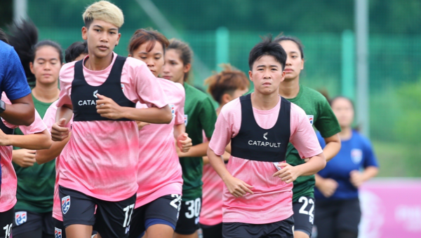 ณ สนามซ้อม PFF National training canter ฟุตบอลหญิงทีมชาติไทยลงฝึกซ้อมก่อนพบกับ ออสเตรเลีย ในศึกชิงแชมป์อาเซียน นัดที่สอง