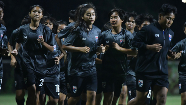ที่สนาม ปานาฮา สเตเดียม นักฟุตบอลหญิงทีมชาติไทย รุ่นอายุไม่เกิน 18 ปี ลงสนามฝึกซ้อมมื้อสุดท้ายก่อนพบกับ สิงคโปร์  วันพรุ่งนี้ ในศึกฟุตบอลหญิงชิงแชมป์อาเซียน รอบแบ่งกลุ่ม นัดที่ 2