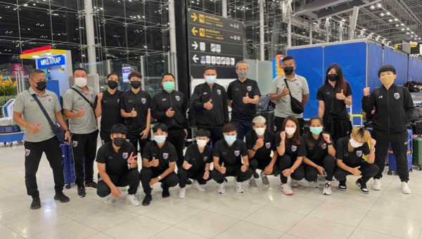 นักฟุตซอลหญิงทีมชาติไทย ชุดอุ่นเครื่องกับ โมร็อคโก​ ชุดดังกล่าว นำโดย อดิศักดิ์ เบ็ญจศิริวรรณ อุปนายกสมาคมกีฬาฟุตบอลแห่งประเทศไทยฯ พร้อมด้วย  พล.ต.ต.ดิเรก ปลั่งดี ผู้จัดการทีม, สุรพงษ์ พลายอยู่วงษ์ หัวหน้าผู้ฝึกสอน และ อนุชา มั่นเจริญ สต๊าฟฟ์โค้ช ร่วมเดินทางไปพร้อมกับนักกีฬา
