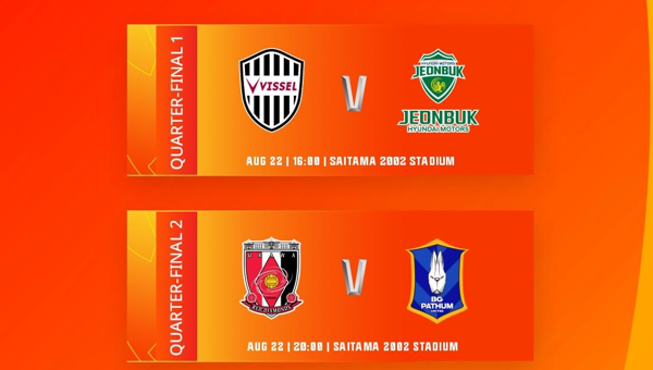 โดยศึกเอเอฟซี แชมเปี้ยนส์ลีก 2022 รอบ 8 ทีมสุดท้าย โซนตะวันออก ระหว่าง บีจี ปทุม ยูไนเต็ด และ อูราวะ เรด ไดมอนส์ จะทำการแข่งขันในวันที่ 22 สิงหาคม 2565 ที่สนามไซตามะ สเตเดี้ยม เวลา 18.00 น. (ตามเวลาประเทศไทย) ถ่ายทอดสดทาง ELEVEN SPORTS