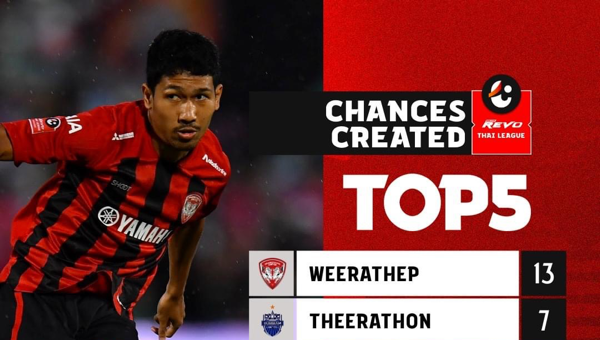 วีระเทพนำโด่งแข้งสร้างโอกาสมากสุดในไทยลีก