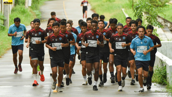 นักเตะเขี้ยวสมุทร สมุทรปราการ ซิตี้ วิ่งเรียกความฟิต ด้วยระยะทาง 12 กิโลเมตร ที่ ม.ราชภัฏเลย ในช่วงเช้า