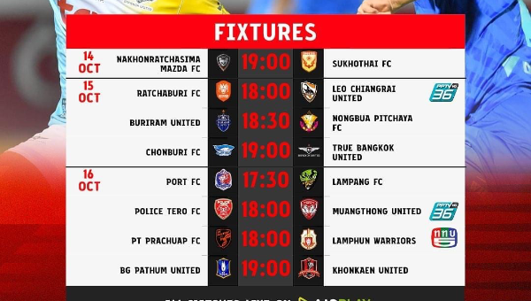 18.00 น.พีที ประจวบ เอฟซี พบ ลำพูน วอริเออร์ สนามสามอ่าว สเตเดียม ถ่ายทอดสด CH5 / AIS PLAY