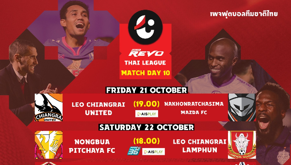 19.00 น. ลีโอ เชียงราย ยูไนเต็ด พบ นครราชสีมา มาสด้า เอฟซี ลีโอ เชียงราย สเตเดียม ถ่ายทอดสด AIS PLAY