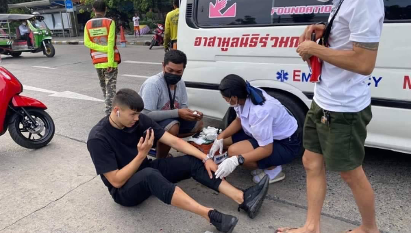 เจ้าตัวได้รับบาดเจ็บ อาสาสมัครให้การช่วยเหลือนำส่ง รพ.เป็นที่เรียบร้อย
