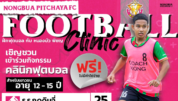 สโมสรฟุตบอล หนองบัว พิชญ เอฟซี เชิญชวนเยาวชน รุ่นอายุ 12-15 ปี(ม.1-ม.3) เข้าร่วมกิจกรรมคลินิกฟุตบอล