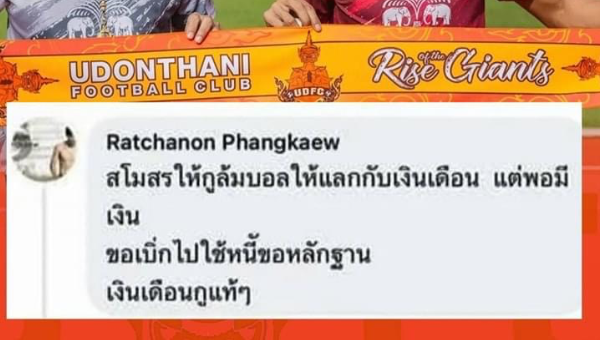 อาจกลายเป็นเรื่องใหญ่เสียแล้ว เมื่อ เหตุเกิดที่สโมสร อุดรธานี เอฟซี รัชชานนท์ ผางแก้ว ออกมาแฉว่า สโมสรอุดรธานี เอฟซี ต้นสังกัดสั่งให้ล้มบอลเพื่อแลกกับเงินเดือน โดยโพสต์ข้อความว่า "สโมสรใหเกูล้มบอลให้แลกกับเงินเดือน แต่พอมีเงิน ขอเบิกไปใช้หนี้ขอหลักฐาน เงินเดือนกูแท้ๆ"