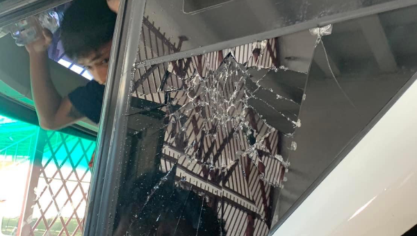 แฟนอิเหนาดุพังกระจกรถบัสช้างศึกก่อนเข้าสนาม