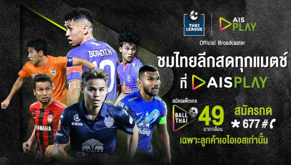 พิเศษสำหรับลูกค้า AIS เพียงสมัครแพ็กเกจ “BallThai” ก็สามารถรับชมฟุตบอลไทยลีก T1-T3  ฟุตบอลทีมชาติไทย ฟุตบอลช้างเอฟเอ คัพ ฟุตบอลรีโว่ คัพ สดทุกแมตช์ พร้อมไฮไลท์ และ รีรัน ได้อย่างเต็มอิ่ม เพียง 49 บาท/เดือน กด*677# และกดโทรออก และยังสามารถรับชมแมตช์ที่ถ่ายทอดทางช่อง AIS PLAY SPORTS 1-4 ได้แบบฟรี! จัดเต็มความมันส์เพื่อแฟนๆ ทุกคน