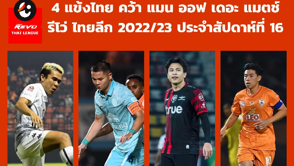 4 แข้งไทย​ คว้า​ แมน ออฟ เดอะ แมตช์ จาก​ 8 เกม​ รีโว่ ไทยลีก​ สัปดาห์​ที่ 16 ยิงกันรวม 36 ประตู