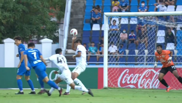 ในจังหวะที่ ยู บย็อง ซู กองหน้า ชลบุรี เอฟซี ได้โหม่งบอลทำประตูแล้วบอลนั้นไปแฉลบมือของทศพล ลาเทศ กองหลังลำพูน วอริเออร์ เป็นจังหวะจุดโทษ หรือไม่…? นั้น