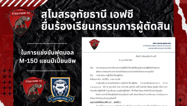 อุทัยธานี เอฟซี ทำหนังสือถึงสมาคมกีฬาฟุตบอลแห่งประเทศไทย ร้องผู้ตัดสินเป่าไม่เป็นธรรมในนัดนี้