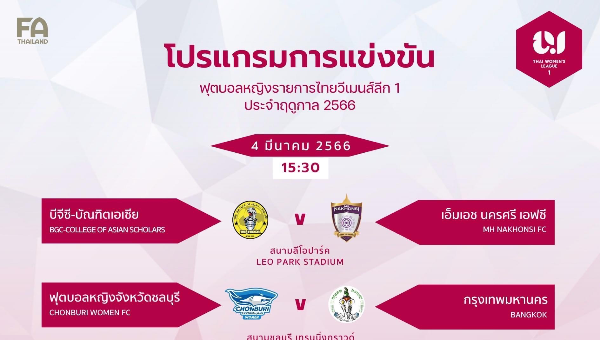 - บีจีซี-บัณฑิตเอเซีย พบ เอ็มเอช นครศรี เอฟซี ที่ สนามลีโอปาร์ค เวลา 15.30 น.