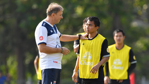โดยการฝึกซ้อมวันนี้ "เจ" ชนาธิป สรงกระสินธ์ กองกลางจากสโมสรคอนซาโดเล ซัปโปโร่ และ "มุ้ย" ธีรศิลป์ แดงดา หัวหอกจากสโมสรซานเฟรชเช่ ฮิโรชิม่า ได้เดินทางมาสมทบและลงฝึกซ้อมกับเพื่อนร่วมทีมเป็นที่เรียบร้อยแล้ว