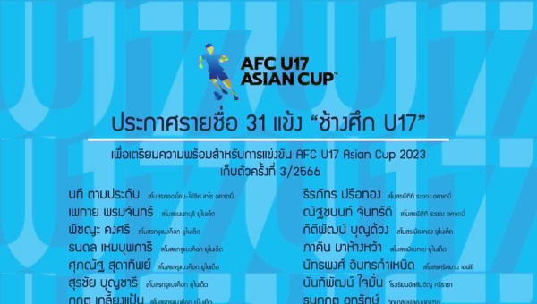 ประกาศ : รายชื่อ 31 นักเตะทีมชาติไทย U17 เก็บตัวครั้งที่ 3/2566 เพื่อเตรียมพร้อมสำหรับ AFC U17