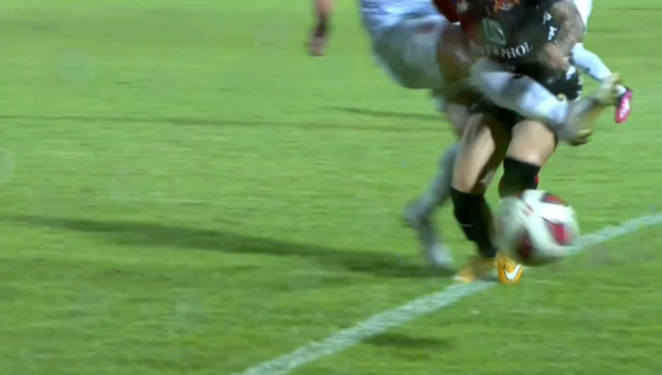 ในจังหวะเข้าแย่งชิงบอลระหว่าง วิธวินทร์ คลอวุฒิ กองหลังลำพูน วอริเออร์ กับ นฤพล อารมณ์สวะ กองกลางขอนแก่น ยูไนเต็ด เป็นจุดโทษ และ ใบเหลืองหรือไม่..? นั้น