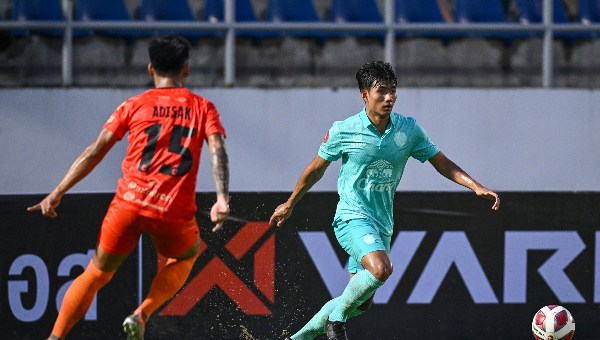 นาทีที่ 4 ธีราทร บุญมาทัน เปิดเตะมุมทางซ้ายเข้าไปหน้าปากประตู อริส ซาริโฟวิช ปราการหลังต่อพิฆาต โหม่งบอลพ้นอันตรายออกไปได้