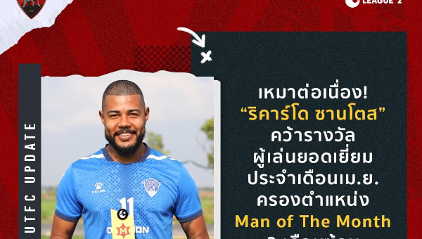 เชื่อว่าผลงานของเจ้าตัวคงไม่ต้องพูดกันเยอะ เพราะนอกจากแฟนบอลชาวอุทัยธานีจะรู้มือกันดีอยู่แล้ว "ริคาร์โด ซานโตส" ยังทุบสถิติไปมากมาย พ่วงด้วยตำแหน่งดาวซัลโวที่นำโด่ง 2 ฤดูกาลซ้อน ( ไทยลีก 3 และ ไทยลีก 2 )