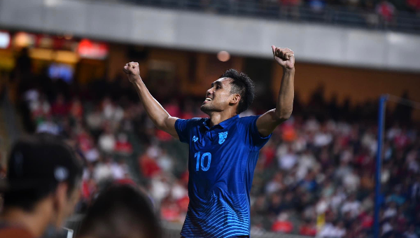 ครึ่งหลังนาทีที่ 63 ชาญณรงค์ พรมศรีแก้ว จ่ายให้ ธีรศิลป์ แดงดา วิ่งมายิงตามน้ำเข้าไปให้ทีมชาติไทย นำก่อน 1-0