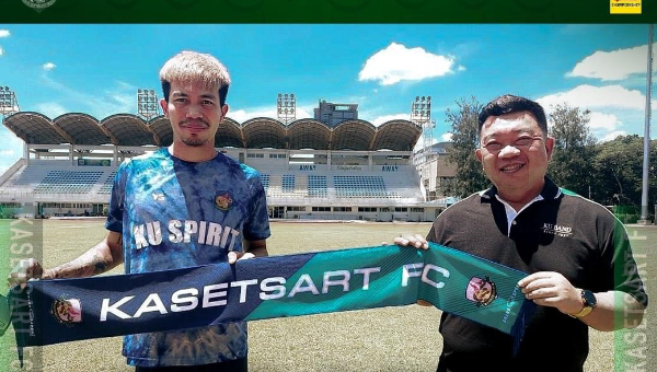 ผศ. รัชด ชมภูนิช รองประธานสโมสร เกษตรศาสตร์ เอฟซี ต้อนรับ "มะขวิด" ไกรลาศ ปัญญาโรจน์ กองกลางตัวรับ จอมทัพตัวเคลื่อนเกม ที่ทำแต้มให้กับหลายสโมสรมาแล้ว เริ่มต้นเส้นทางฟุตบอลในฐานะ เด็กปั้นของ เอสซีจี เมืองทอง ยูไนเต็ด ย้ายมาจาก สงขลา เอฟซี