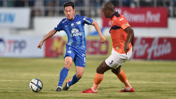 นาที 27 ชลบุรี เกือบได้ประตูตีเสมอ เมื่อ มาร์เคลย์ ซานโตส พาบอลหนี อภิวัฒน์ งั่วลำหิน เข้าไปในเขตโทษ ก่อนตักให้ วรชิต กนิตศรีบำเพ็ญ โขกย้อยหลุดเสาสองไปนิดเดียว