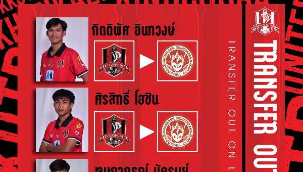 สโมสรขอนแก่น ประกาศปล่อยตัว 4 ดาวรุ่ง ย้ายไปร่วมทีม "กระรอกสายฟ้า" สโมสรขอนแก่นมอดินแดง เอฟซี  ในศึกไทยลีก 3 ด้วยสัญญายืมตัวจนสิ้นสุดฤดูกาล