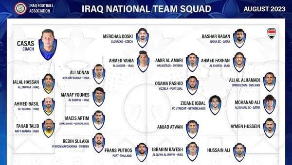 เซซุส คาซาส หัวหน้าผู้ฝึกสอน ทีมชาติอิรัก เปิดเผยรายชื่อ 23 นักเตะที่จะเข้าร่วมการแข่งขันฟุตบอลชิงถ้วยพระราชทาน คิงส์ คัพ ครั้งที่ 49 ที่ประเทศไทย ออกมาเรียบร้อยแล้ว
