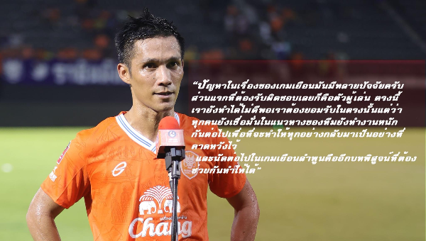 “ตอนนี้ผลงานของทีมโดยรวมก็ยังถือว่าไม่เป็นที่น่าพอใจแล้วกันนะครับ เพราะว่าทั้งทีมเองและตัวผู้เล่นเองเราตั้งความหวังไว้ค่อนข้างสูง ผมคิดว่าแฟนบอลก็คงคิดเหมืนกัน ซึ่งตรงนี้เรารู้ดีถึงสถานการณ์ตรงนี้ แต่นักเตะทุกคนยังเต็มที่เพื่อให้ผลงานกลับมาเป็นไปตามผลงานที่ตั้งเป้าไว้”