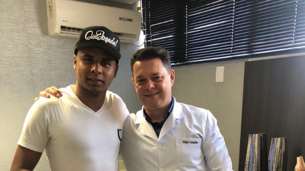 จากอาการเจ็บนี้ทำให้สโมสรส่งตัวเขากลับบราซิล เพื่อไปเข้าโปรแกรมฟื้นฟู ด้วยวิธีการส่องกล้องเพื่อบำบัดสภาพกระดูกอ่อนและเอ็นหัวเข่าซ้าย โดย เซร์คิโอ คัมโปลิญ่า ศัลยแพทย์มือดี ซึ่งผ่านการรักษาแข้งดังระดับโลกมากมาย รวมถึง เนย์มาร์ ดาวเตะทีมชาติบราซิลของ ปารีส แซงต์ แชร์กแมงด้วย