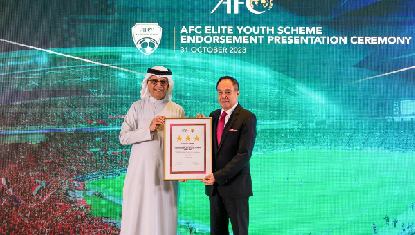 โดย พล.ต.อ.ดร. สมยศ พุ่มพันธุ์ม่วง นายกสมาคมกีฬาฟุตบอลแห่งประเทศไทยฯ ได้ขึ้นรับรางวัล การพัฒนาฟุตบอลเยาวชน หรือ AFC Elite Youth Scheme และเลื่อนชั้น เป็นระดับ 3 ดาว