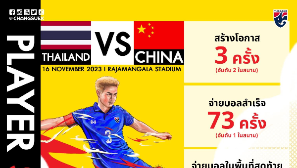 โก๋อุ้มครองท็อป3สถิติเกมไทยพ่ายจีน