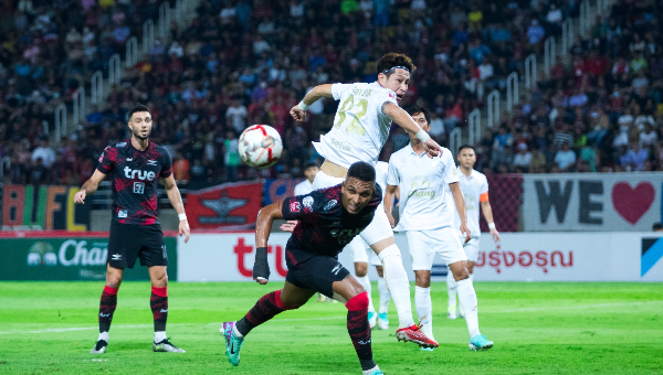 นาทีที่ 29 นิติพงษ์ ครอสบอลเข้ากลาง บอลไปโดนตัว พรรษา บอลแฉล่บออกหลังไป