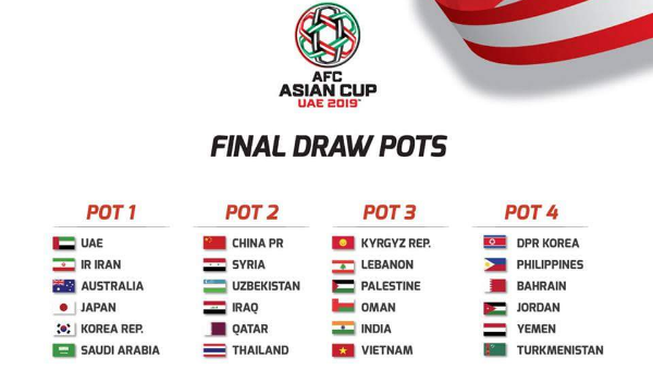 ทีมชาติถูกจัดให้อยู่ในโถ 2 ในการจับสลากฟุตบอลชิงแชมป์เอเชีย 2019 โดยผลการแบ่งโถจับสลากมีดังนี้