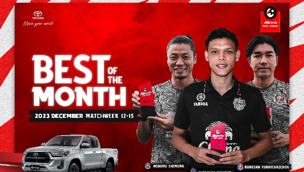 สมาคมกีฬาฟุตบอลแห่งประเทศไทย ในพระบรมราชูปถัมภ์ ร่วมกับ บริษัท ไทยลีก จำกัด และ บริษัท โตโยต้า มอเตอร์ ประเทศไทย จำกัด ประกาศรางวัลยอดเยี่ยมต่าง ๆ ประจำเดือนธันวาคม 2566 ของการแข่งขัน รีโว่ ไทยลีก 2023/24 โดยรางวัล Best of the Month ประจำเดือนธันวาคม 2566 ประกอบด้วย