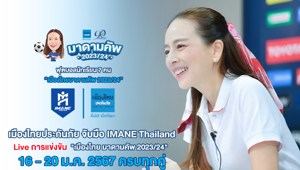 บริษัท เมืองไทยประกันภัย จำกัด (มหาชน) จัดหนักจัดเต็มให้กับฟุตบอลนักเรียน 7 คน “เมืองไทย มาดามคัพ 2023/24” หลังล่าสุดได้ บริษัท ไอมาเน่ (ไทยแลนด์) จำกัด เข้ามาเป็นหนึ่งในผู้สนับสนุน ถ่ายทอดสดการแข่งขันรอบประเทศ ตั้งแต่รอบแบ่งกลุ่ม จนถึง รอบชิงชนะเลิศ ระหว่างวันที่ 16-20 มกราคม 2567