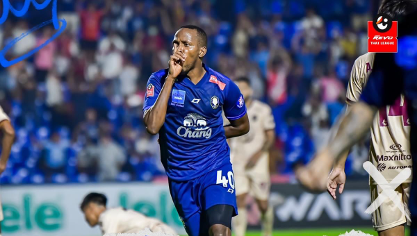 นาทีที่ 17 จักรกฤษ ลาภตระกูล ครอสลูกเตะมุมเข้ามาให้ ชาติชาย แสงดาว ได้โหม่งเน้นๆเข้าไปให้พีที ประจวบ ขึ้นนำ 1-0